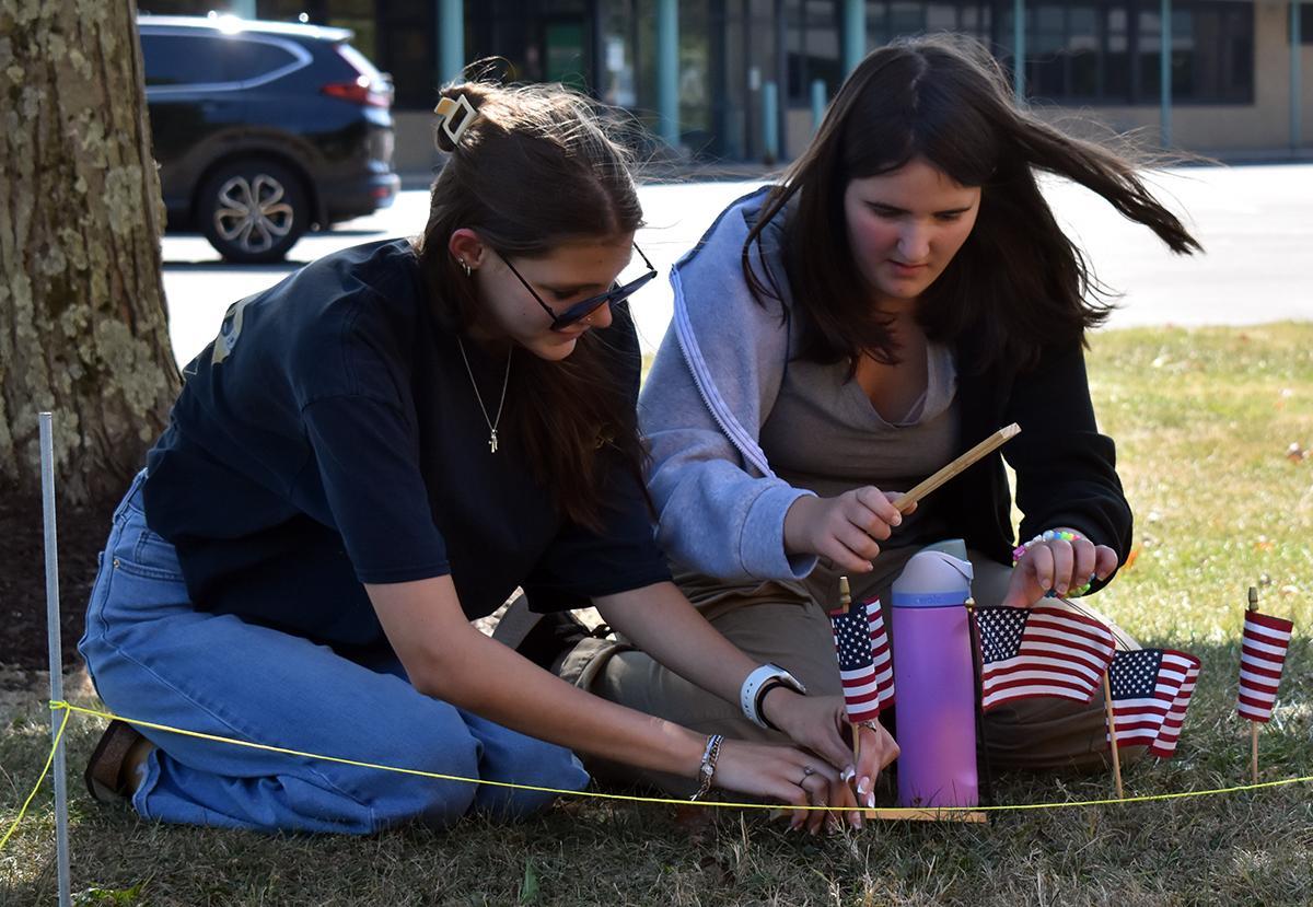 While in past years the memorial has been installed along Route 228 in front of Mars Area High School, the project was moved this year because of road construction, says Capt. Joshua L. Rager, JROTC instructor. “We felt it was an opportunity to share the flag display at another location this year.”
